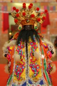 祭典儀式 八庄大道公的信仰結合了鄉土祖籍守護神、驅蟲豐收之神、驅瘟逐疫醫療之神、鎮鬼驅魅之神、禽畜保護神等多重神力的神祇。八庄大道公信仰的主要祭典事務工作,由爐主與副爐主和頭家負責,爐主副爐主一人,頭家的人數則不一定,依祭祀區的大小鄰里數多寡而定,八庄的祭祀圈大小有別,大者如淡水街庄有十五個里,小者只有一里(中寮)或是一村(福德村與圓山村各一部份),目前爐主、頭家以鄰里長為主的人員,在每年農曆三月十八日,在爐主厝大道公神像前以擲杯方式決定,爐主要負責整年的大道公的平日燒香拜拜,該值年區內(輪甲)信眾,則負責每月初二及十六在演戲埔的祭典事務和準備菜飯(犒軍擔),以及赴演戲埔拜拜(犒軍),另與爐主厝在同一聚落者,稱為「爐主甲」,則是每月初二及十六在爐主厝的廣場上進行「犒賞大爐」,全值年庄庄民也同時開始飼養豬公參加隔年三月十五的神豬競賽。 |