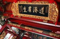 「大道公」就是保生大帝,又稱「吳真君」,本名吳本,有「醫神」之稱。當移民渡海來臺時,面臨瘟疫災變,醫神更為民間所崇拜仰。而在神案下的虎爺下壇將軍,據說是老虎為了感恩圖報,甘願終身為坐騎,並鎮廟護堂。