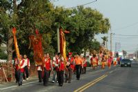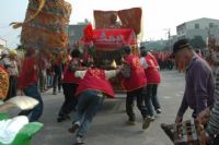 相傳鄭成功尚未渡海來台,仍駐紮在福建沿海一帶時,因發生瘟疫,軍民染病死亡無數,後因保生大帝顯靈,才將疫情控制,兵士為感謝保生大帝的普渡眾生,禮聘巧匠雕刻三尊保生大帝,日夜供奉,信仰相當虔誠。這三尊由唐山名師雕刻的保生大帝金身,均是原木一體雕刻成型,手拿奏板。 鄭部領台後,兵士也請保生大帝 隨行,護佑軍民平安,其中一尊隨 著兵士回墾,到達六斗仔地區,雍正、乾隆年間,由當地民眾興建六斗廟供奉。 六斗仔地區位在三間厝南側,緊傍牛稠溪,昔時相當繁榮,已有鎮市雛型,街景盛況不亞於新港,後因爆發可怕的瘟疫,人畜大量的死亡,居民被迫遷移,大都移居三間厝與中洋子。其中以三間厝最多,因此,保生大帝也就成為三間厝的信仰主神。三間厝善男信女有感於保生大帝的紳威無邊,民國36年建永興宮祭祀保生大帝。而保生大帝也不負村民所望,護佑著三間厝子民。 |