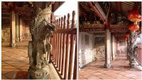 清初遷界,白礁慈濟宮受到波及,前殿全毀[1]:36。嘉慶四年(1799年)重修,十四年(1809年)再修,但因經費問題所以只修了拜亭[1]:36。後來因有福建水師提督王得祿之支持,次年(1810年)進行較大規模的整修[1]:36。但這幾次的重修並未修復前殿[1]:36。嘉慶廿一年(1816年)重修時,今臺灣臺南市學甲區一帶的信眾曾奉獻今前殿門廊六根蟠龍石柱與中殿第一排的四根蟠龍石柱[1]:36。