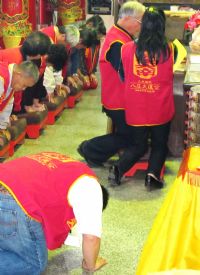 殿門五扇採用大陸紅豆杉木板及樟木彫刻門神裝上,再由本地師傅彩繪按金箔。